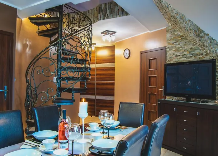 Microondas, chaleira elétrica e máquina de lavar louça são fornecidos para auto-serviço. Estação de autocarros de Przystanek está a 5 minutos a pé. Entretenimento ao vivo e karaoke são possíveis neste apartamento .